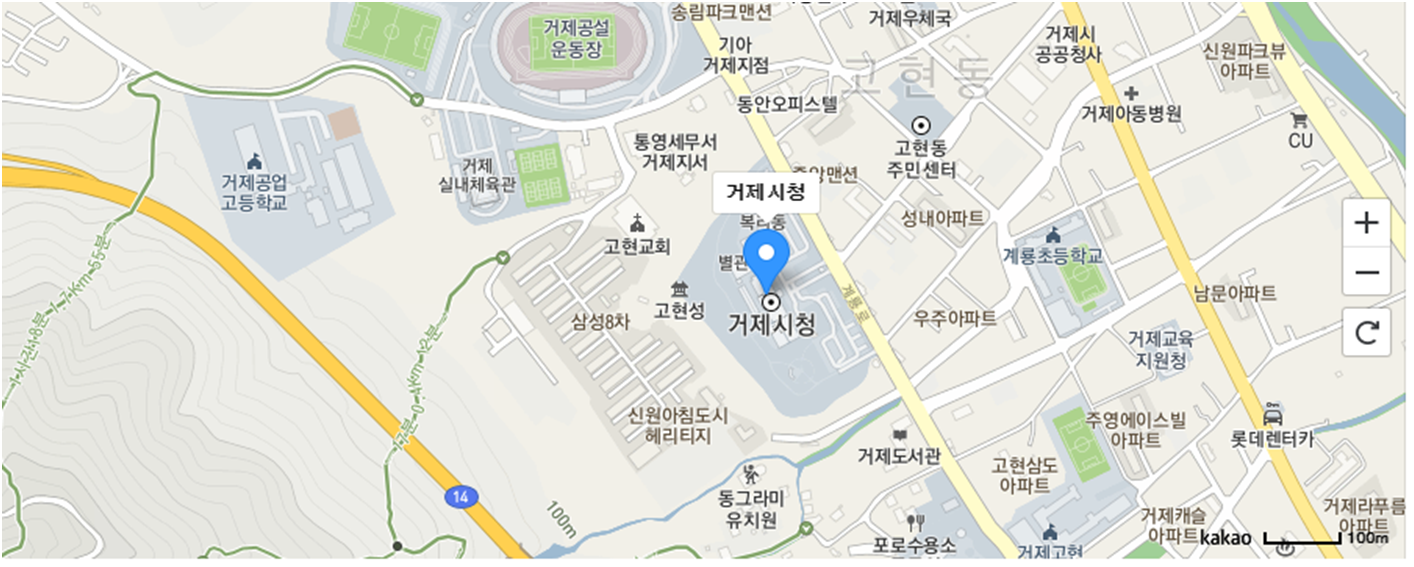 참고로, 거제시청 청사는 고현동에 위치해 있습니다. 주소는 경상남도 거제시 계룡로 125 이며, 대표전화는 055-639-3000 입니다. 71-1번, 100번, 110번 등의 버스가 청사로 운행하고 있으며, 고현시외버스터미널에서 내려 걸으면 20분 정도 소요됩니다.
