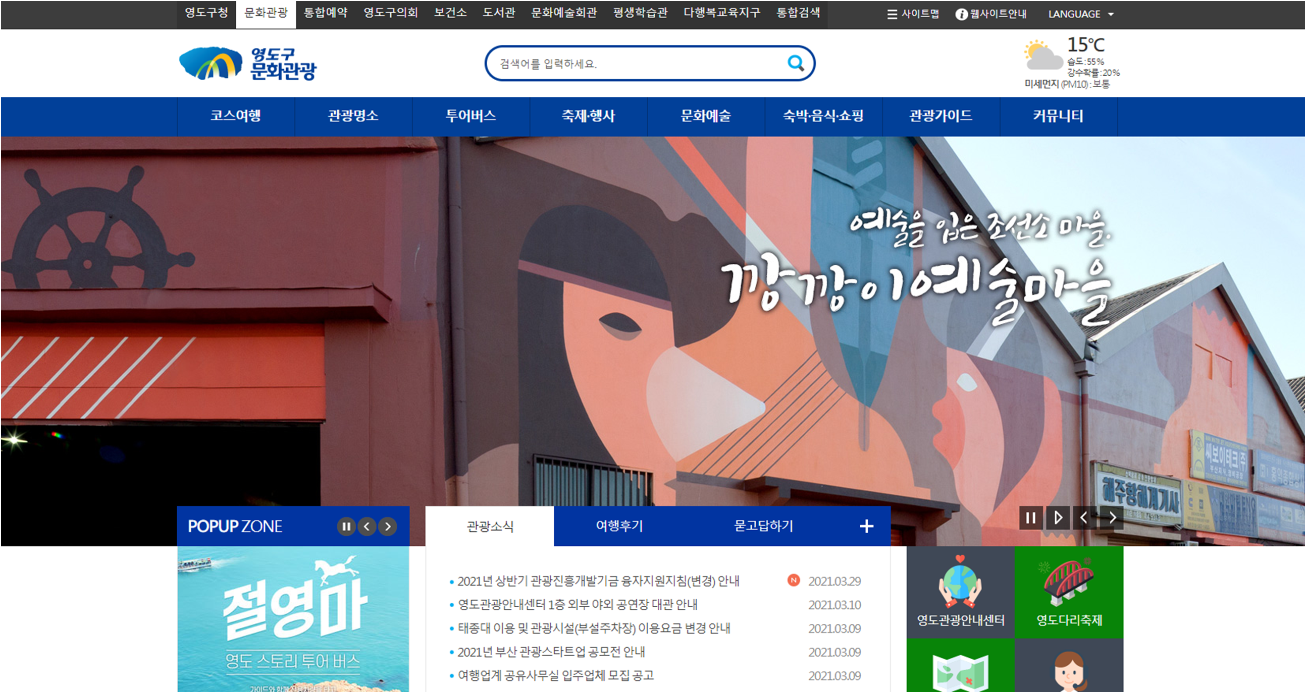 태종대가 위치한 영도구는 부산에서도 손꼽히는 문화관광명소입니다. 영도구청 홈페이지의 문화관광 메뉴를 이용하면 영도구청의 문화관광명소 및 볼거리, 놀거리, 먹을거리에 대한 다양한 정보를 확인할 수 있습니다.