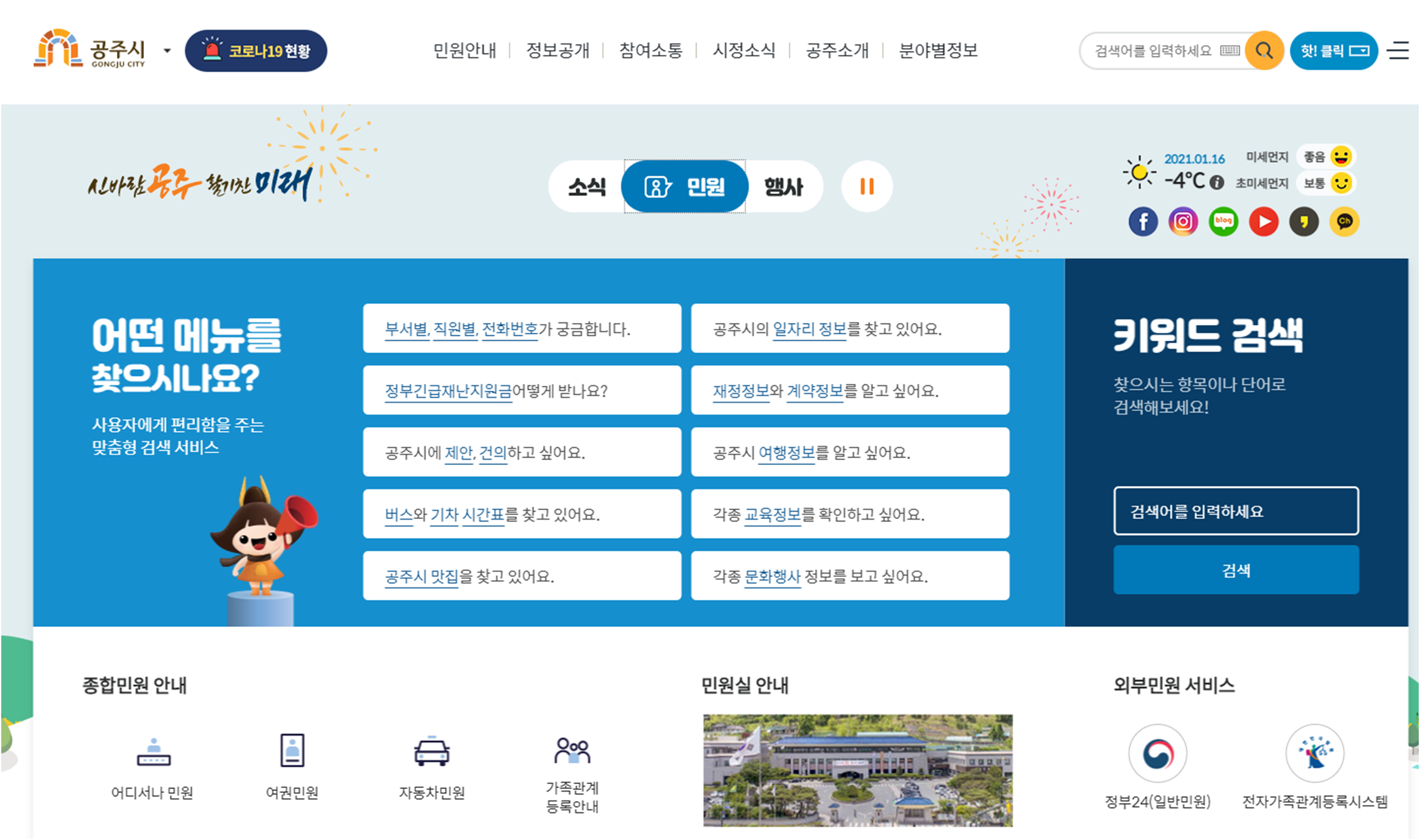 공주시청 홈페이지에서 확인할 수 있는 주요 기능