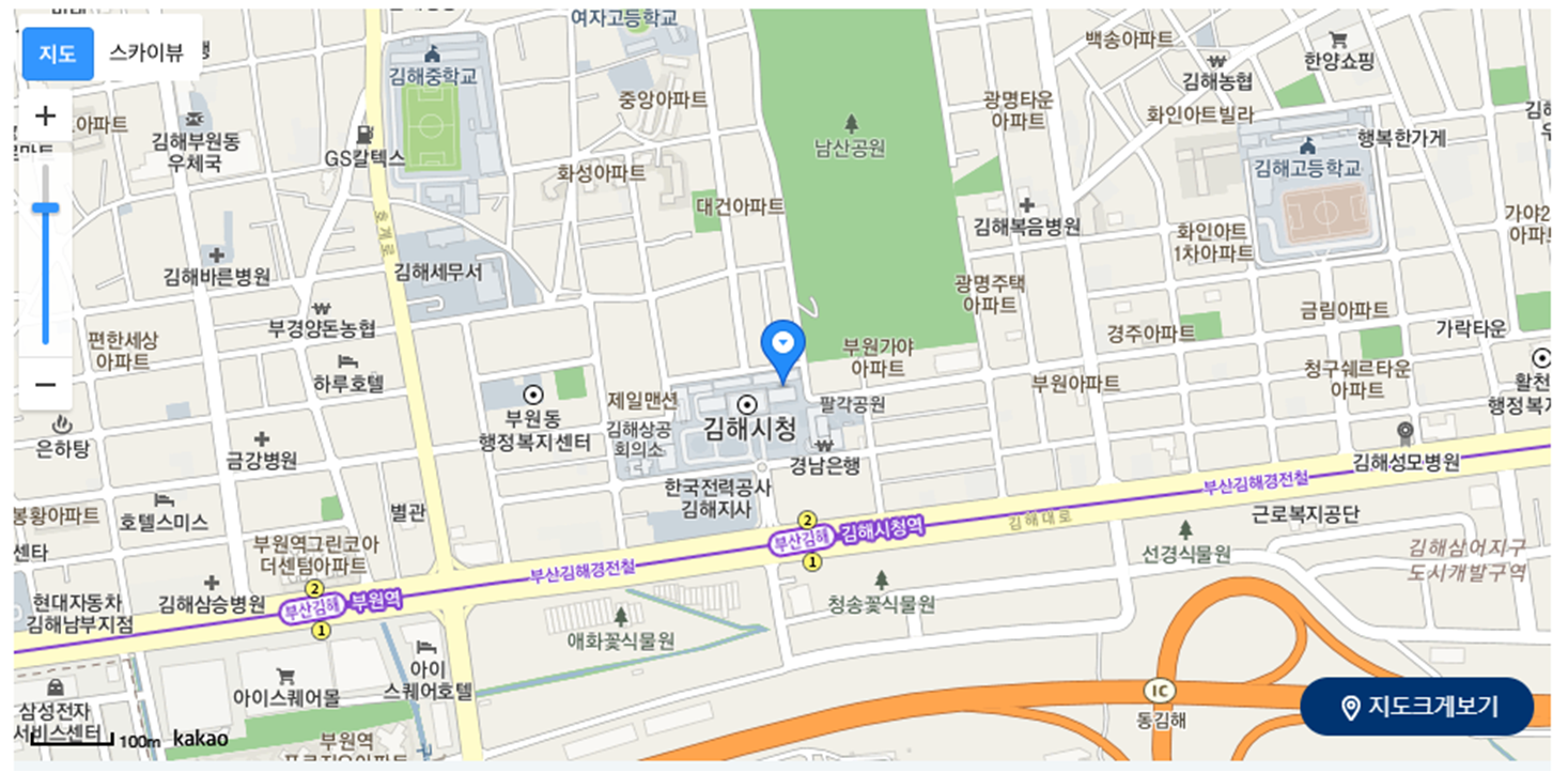 시청 청사의 조직도 및 연락처, 그리고 위치 정보도 이 곳에서 확인할 수 있습니다. 참고로 김해시청은 부원동에 위치해 있으며, 주소는 경상남도 김해시 김해대로 2401, 대표전화는 1577-9400 입니다.