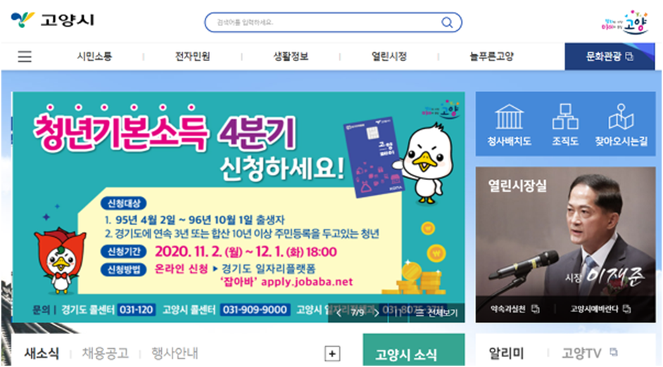 이상으로 고양시청 홈페이지 이용방법에 대해 간단히 알아보았습니다. 위에서 소개한 내용 외에도 유용한 기능들이 많으므로, 홈페이지를 이용하는 분께서는 시간을 내어 한 번 주욱 훑어보시면 여러모로 유익할 것 같습니다.