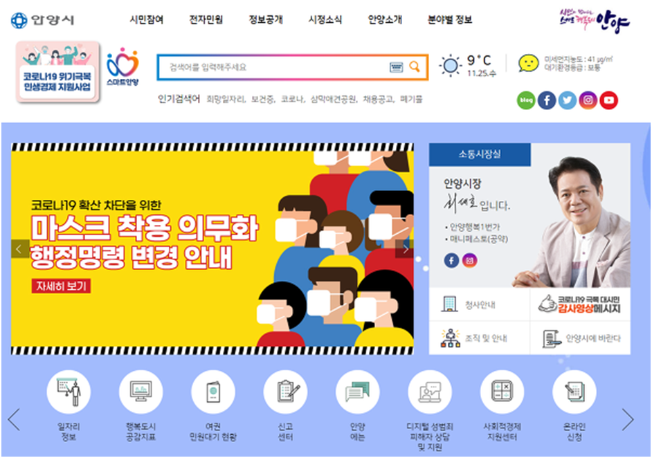 안녕하세요, 오늘은 "시민이 행복한 스마트 도시" 경기도 안양시청 홈페이지에 대한 내용을 함께 간단히 알아보는 시간을 가져볼까 합니다.